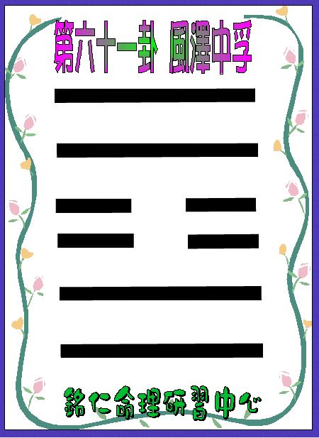 彖曰:中孚,柔在內而剛得中。 說而巽,孚,乃化邦也。 豚魚吉,信及